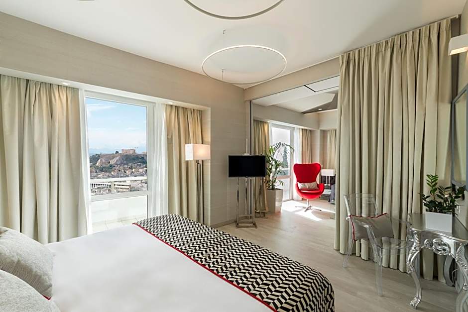 Staying at the not only means enjoying comfort and luxury, but also taking in breathtaking views of the city. With a variety of room types available, including the Premium Room with Private Balcony & Panoramic Acropolis View and the Deluxe Suite with Corner Balcony & Lycabettus Hill View, you can choose accommodations that offer stunning vistas of Athens' iconic landmarks and truly enhance your stay.