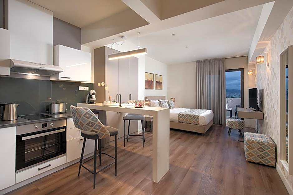 Choose from a diverse lineup of accommodations, including a Studio, Superior King with Acropolis View, and multiple Suites. Many units open to a terrace, sun deck, patio, or balcony, inviting mornings with a dose of Greek sun. Each space includes a fully equipped kitchen and stays non-smoking, with soundproofing adding a peaceful retreat after a day of wandering the city.