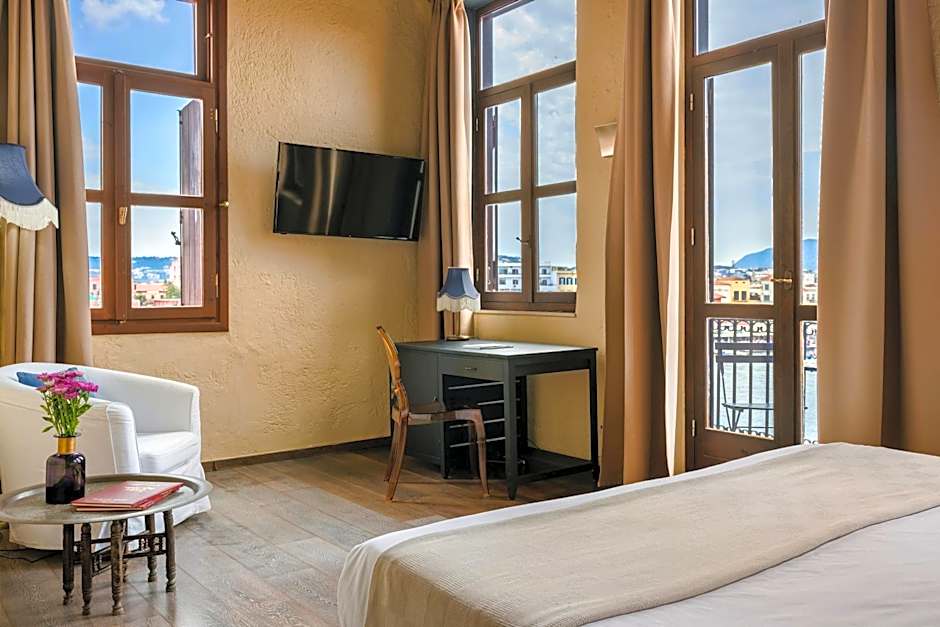 This room is located on the first floor and features a private terrace with panoramic view over the Venetian Harbor. It features a king size bed and a lounge area that can accommodate up to 2 extra guests.