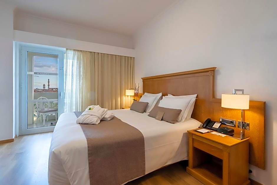 Located on the 4th and 5th floor, this superior room opens to a private balcony with panoramic views over Chania Old Town. It is fitted with a king-size bed with orthopedic mattress and a pillow menu, and also includes: