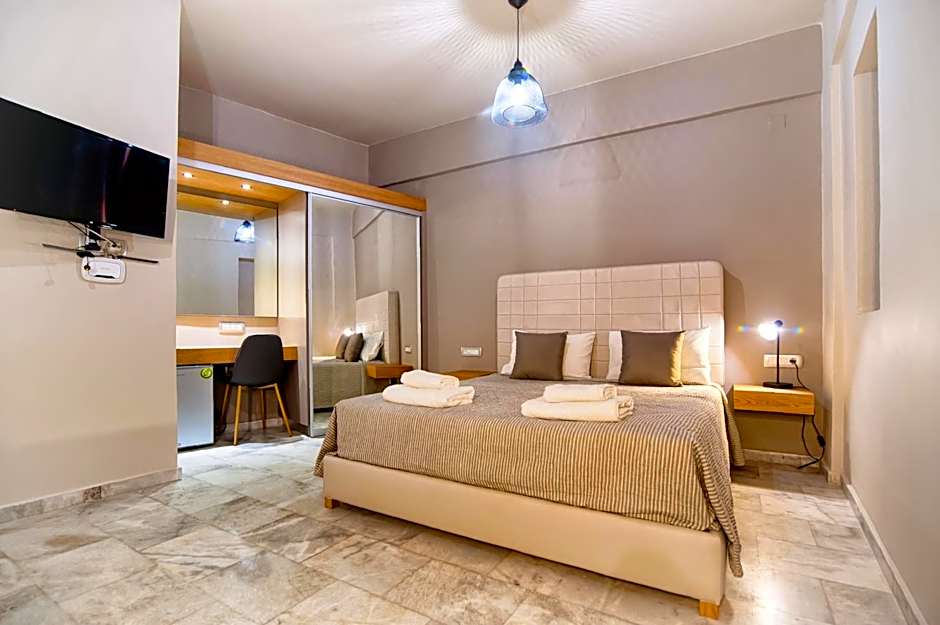 At Minoos Hotel, the available room types are Triple, Suite, and Single. Smoking is not allowed in any of the rooms. The Triple Room with Balcony and the Superior Triple Room with Spa Bath both accommodate 3 adults and have a combination of Twin and Queen size beds. The Superior Suite with Terrace and Sea View, Deluxe Suite Ground Floor with Spa Bath, and Junior Suite with Terrace and Sea View accommodate 2 adults and have either Queen or Double size beds.