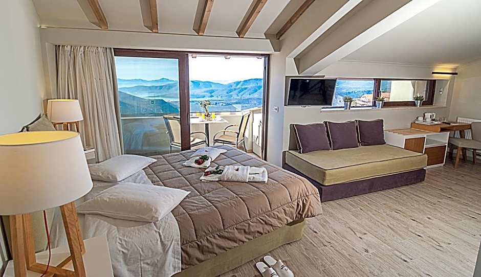 Located on the top floor, this air-conditioned, elegantly decorated suite features a private balcony with panoramic views over the surrounding area. It includes: -a bathroom with spa bath, slippers and hairdryer and views of the gorge -a LED satellite TV -a safe -individually controlled air conditioning -mini fridge.