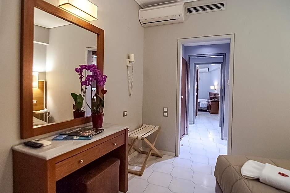 The Fedriades Delphi Hotel offers a variety of rooms including Triple Rooms with Panoramic View, Double or Twin Rooms, Double or Twin Rooms with Panoramic View, Special Offer - Family Interconnecting Rooms, Junior Suites with Panoramic View and Spa Bath, and Quadruple Rooms with Spa Bath. Smoking is not allowed in any of the rooms. The rooms range in size from 226 sqft to 452 sqft and can accommodate between 2 to 4 adults, with some rooms also accommodating children. The beds in the rooms include Twin beds, Double beds, and Queen size beds.