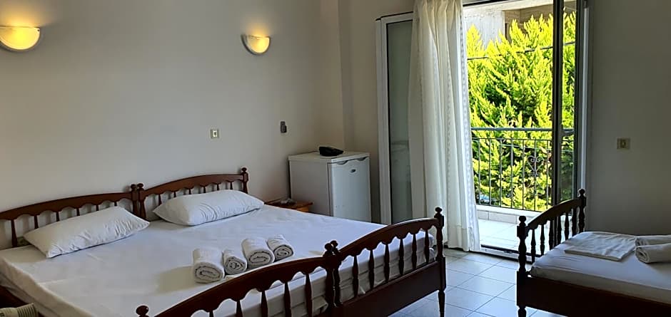 From a sun-kissed terrace to a breezy beach just steps away, Artemis Hotel provides a charming seaside base along the Erétria coast. Beachfront access pairs with a bar, free Wifi, and air conditioning, while a sun deck invites sunset-watching and a terrace offers laid-back evenings. Free beach umbrellas and chairs set up carefree days by the water, and a balcony plus garden views add simple comforts.