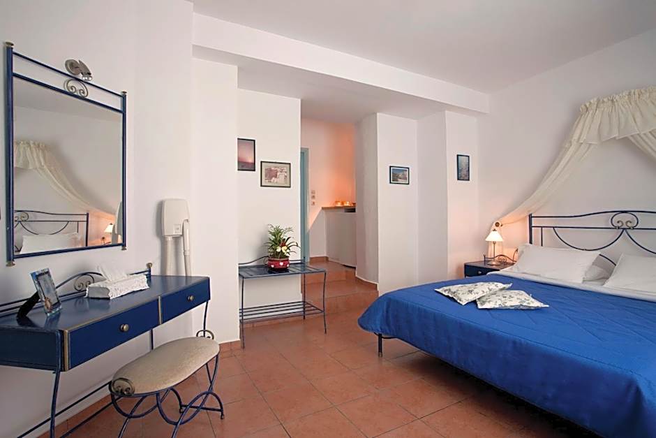 Opening to a veranda with unique views over the Caldera and the sea, this elegant junior suite features an open-plan bedroom with a double bed and a bathroom with bathtub. It offers free WiFi and is fully equipped with individually controlled air conditioning, TV, free tea/coffee and hairdryer.