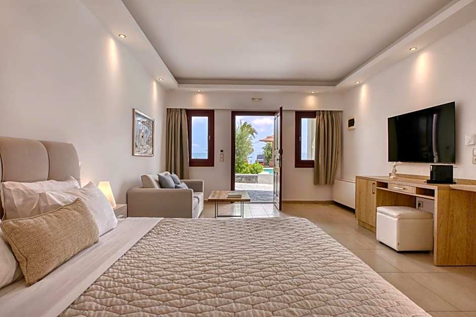 This suite features a pool with a view, hot tub and spa bath. This suite consists of 1 living room, 1 separate bedroom and 1 bathroom with a shower and free toiletries. The air-conditioned suite provides a flat-screen TV with satellite channels, soundproof walls, a tea and coffee maker, a seating area as well as sea views. The unit offers 2 beds.