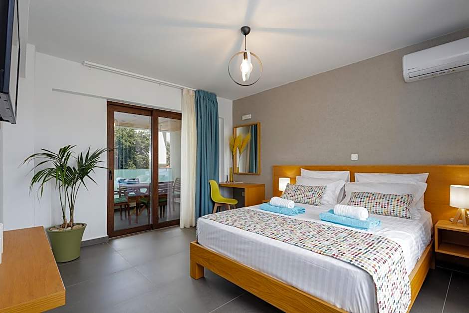 is a 4-star apart hotel in Gállos, Greece, just from the city center. This sun-kissed retreat blends apartment-style comfort with hotel perks, including an outdoor swimming pool (free), free Wi-Fi, and air conditioning. Private parking on site is free, and beach-ready touches like free umbrellas and loungers invite relaxed days by the shore.