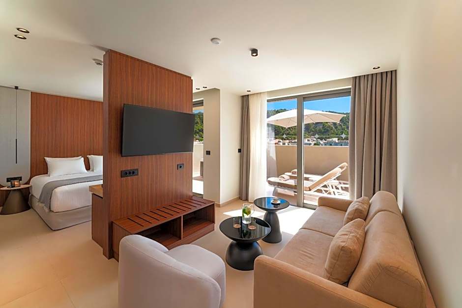 The spacious twin/double room features air conditioning, soundproof walls, a terrace with pool views as well as a private bathroom boasting a shower.