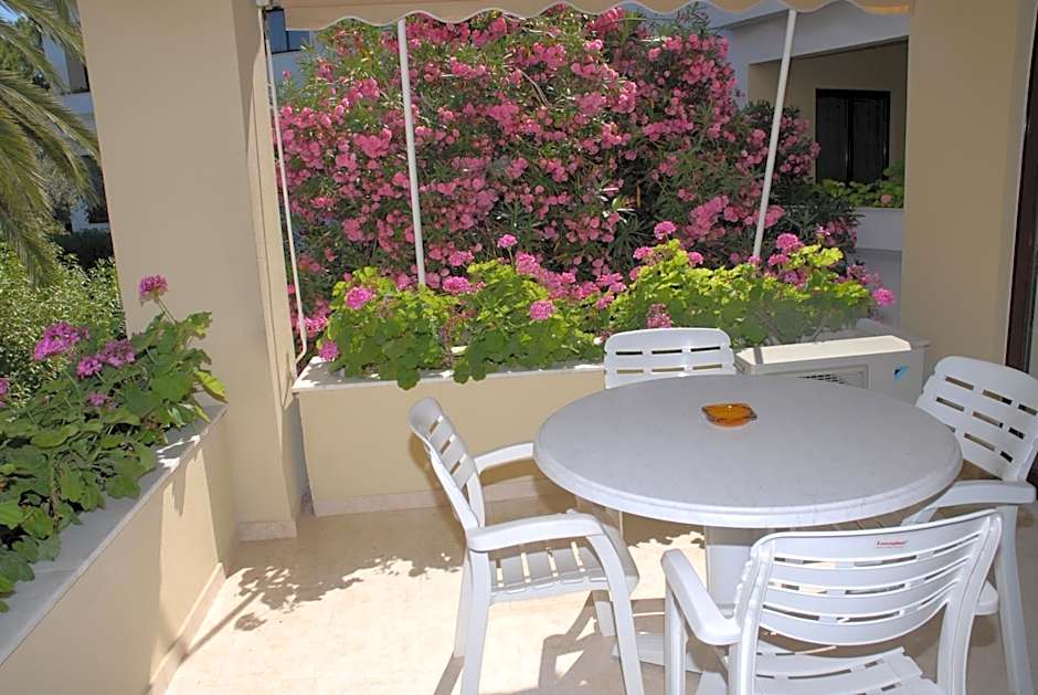 This apartment consists of a fully equipped kitchen with a stove, fridge and washing machine, a separate bedroom and a living room with TV. It opens to a furnished balcony with pool or garden views and includes a hairdryer. Air conditioning is available on request and upon charge. The air conditioning charge is per day and is valid until 12 o'clock the following day.
