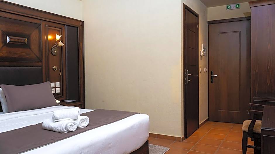 Overlooking Meteora from its furnished balcony, this air-conditioned room features earthy colors and wooden furnishings. A flat-screen satellite TV, a fridge and a safe are available.