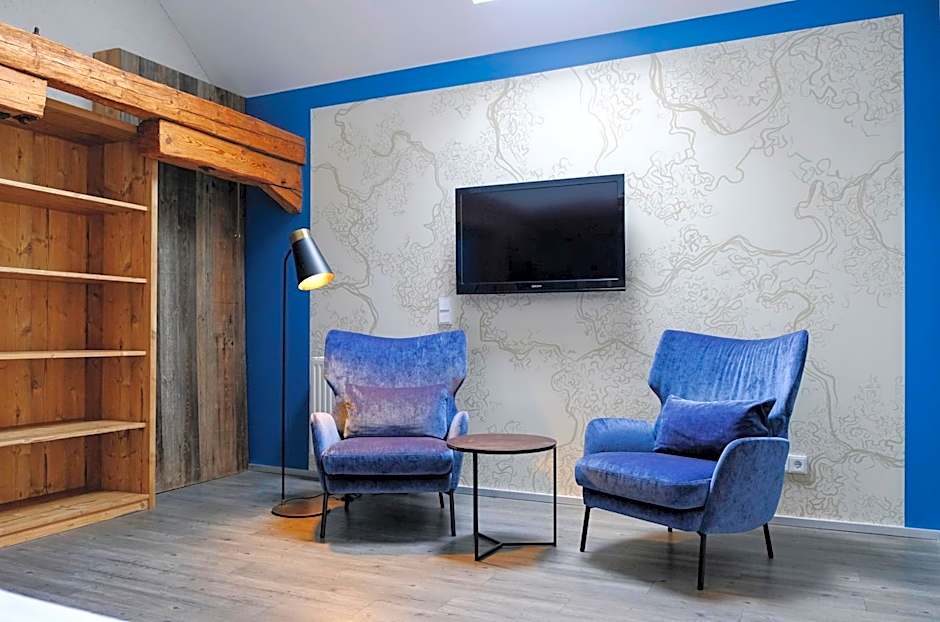 Set on a hillside, the vibe stays relaxed and scenic, with a bar to unwind and a sun deck or terrace to soak up views of the mountains, the river, and the garden.