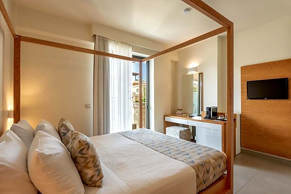 Airis Boutique Hotel & Suites - For adults only is a 4-star retreat in Kato Daratso, Greece, about 3.9mi from the city center. Outdoors, a seasonal pool sits beside a sun deck, a garden, and a terrace—perfect for daytime lounging and easy evenings under the Greek sky. Dining on site includes the Breakfast room with traditional Greek and European fare, and Ladi, a modern space for Greek and European plates; a bar rounds out the evening scene. A private entrance and a bathtub with free toiletries add convenient touches to the stay.