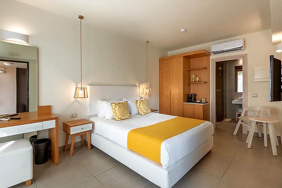 Accommodation options include Standard, Superior, Junior Suite, and Suite. The Superior Rooms feature a Double or Twin beds, while the expansive Suite can accommodate up to 6 adults. All accompanying spaces are non-smoking, offering a grown-up, relaxed base for exploring the island’s coast and coastline adventures.