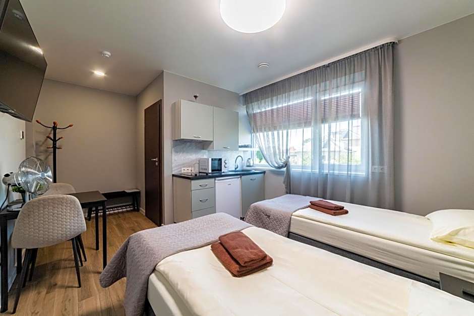 The studio's kitchenette, which has kitchenware and an electric kettle, is available for cooking and storing food. This air-conditioned studio features a private bathroom, a private entrance, a wardrobe as well as a terrace. The unit offers 2 beds.