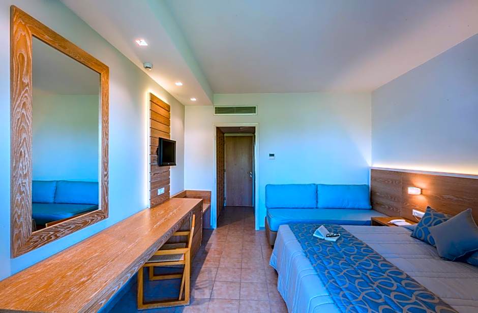 Located 328 feet from the beach, this room offers a balcony with views of the pool or side views of the Aegean Sea. An LCD satellite TV and fridge are included. Air conditioning is centrally controlled and operates on selected hours. Please note that air conditioning is available from 15 June to 15 September.