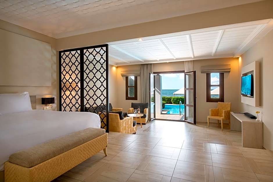 Guests will have a special experience as the suite features a pool with a view. This spacious suite consists of 1 living room, 2 separate bedrooms and 2 bathrooms with a walk-in shower and free toiletries. The air-conditioned suite provides a flat-screen TV, a mini-bar, a tea and coffee maker, a seating area as well as sea views. The unit offers 6 beds.