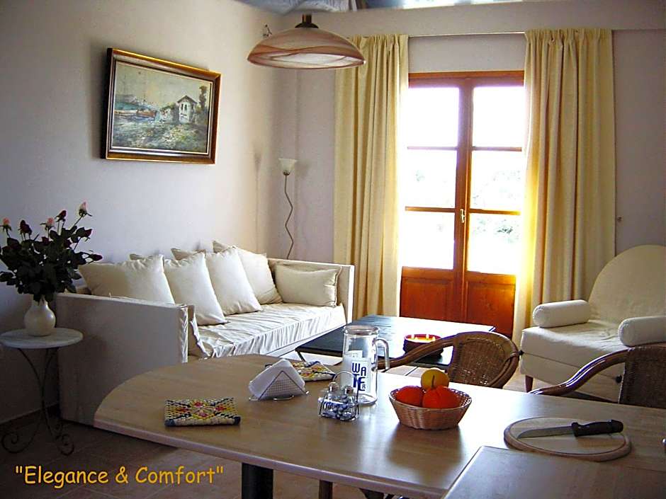Opening to a large veranda or balcony, this air-conditioned apartment features a living room and separate spacious bedroom. Decorated with respect to the traditional Cretan style, it also offers a fully equipped kitchen and bathroom with shower.