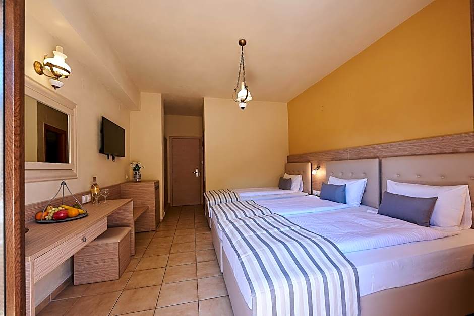 Families and solo travelers alike will appreciate the pet-friendly policy, ensuring your furry friends are welcome on this sunny escape. With a kid-friendly buffet, a farm-fresh garden view, and easy access to golf courses and tennis courts at extra charges, there's never a dull moment. Culinary delights await at the on-site restaurant and bar, while the terrace and sun deck provide spots for soaking in the breathtaking Greek sun or enjoying an evening drink.