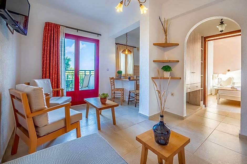 Featuring a seating area and separate bedroom, this spacious apartment is only 820 feet from the beach. Traditionally decorated, it opens to a balcony or patio with Cretan Sea and mountain views. Its kitchenette includes an oven, cooking hobs and fridge. A hairdryer, bathrobes and free toiletries are provided.