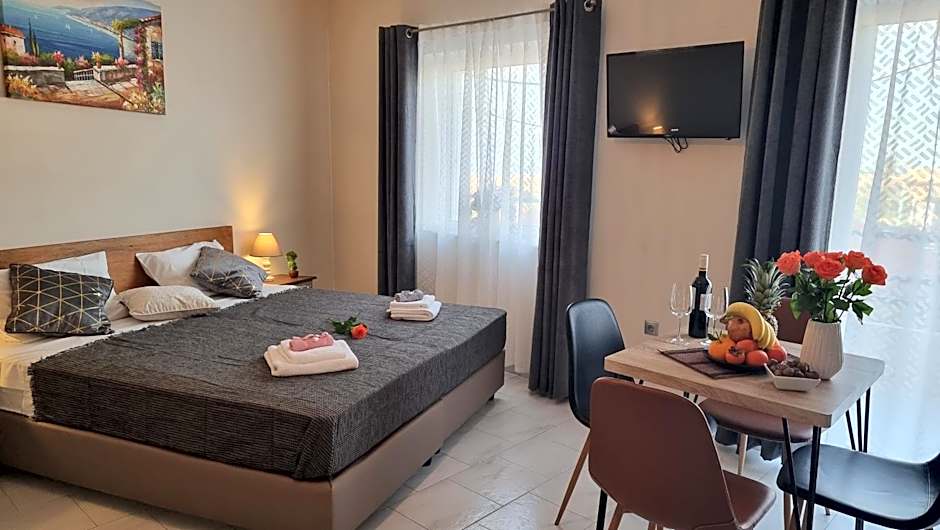 Meals can be prepared in the well-fitted kitchenette, which is equipped with a stovetop, a refrigerator, kitchenware and an electric kettle. This air-conditioned triple room includes a flat-screen TV with cable channels, a private bathroom as well as a balcony with sea views.