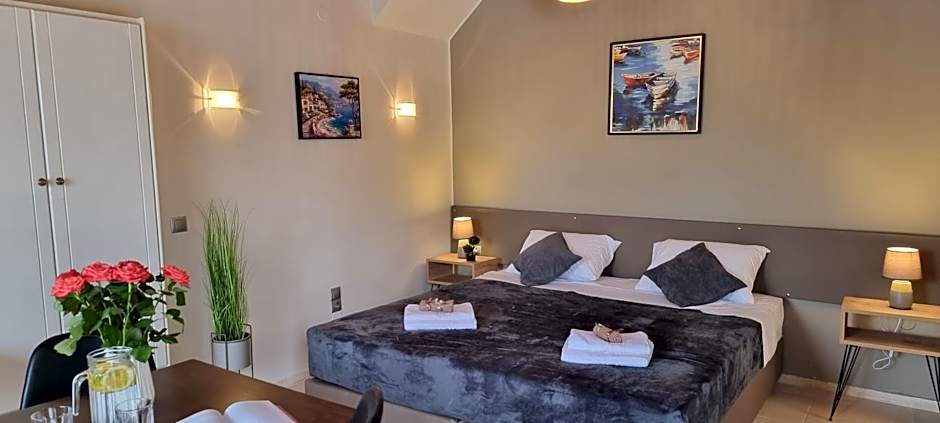 The double room features a wardrobe, a dressing room, as well as a private bathroom boasting a shower and a hairdryer. Guests can make meals in the kitchenette that has a stovetop, a refrigerator, kitchenware and an electric kettle. The air-conditioned double room offers a flat-screen TV with cable channels, a private entrance, soundproof walls, a seating area as well as garden views.
