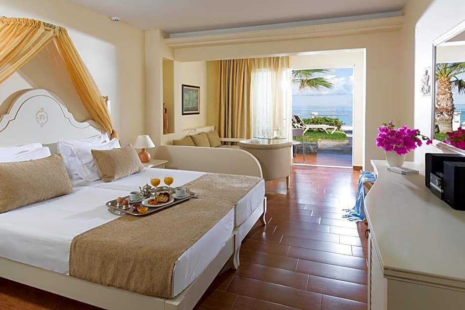 Bem-vindo ao luxuoso Alexander Beach Hotel & Village Resort na ensolarada cidade de Mália, Grécia. Este resort 5 estrelas está localizado a apenas 1,1mi do centro da cidade, oferecendo a combinação perfeita de relaxamento e conveniência. Situado ao longo da Agiou Ioanni Beach Road, este deslumbrante resort ostenta 271 avaliações e é o favorito dos viajantes pelo seu serviço de primeira classe e belas paisagens.