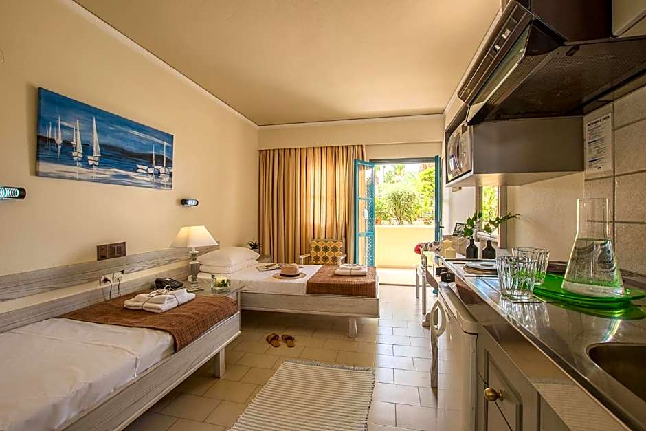 In the kitchenette, guests will find a stovetop, a refrigerator, kitchenware and a microwave. This air-conditioned studio is consisted of of a flat-screen TV with satellite channels, a private bathroom as well as a balcony with garden views. The unit has 3 beds.