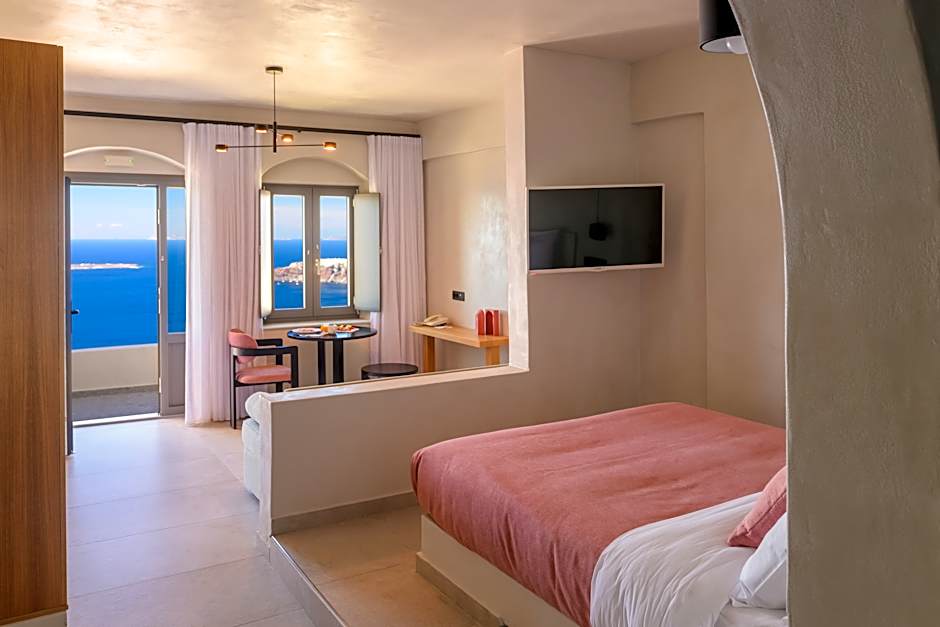 Featuring a private pool and views over the Caldera, this suite opens to a private, spacious terrace with sun beds and dining area.