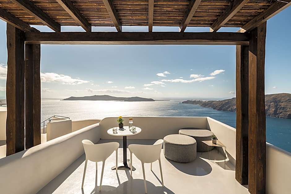 This deluxe room features Caldera views, a spacious bathroom and an outdoor mini plunge pool.