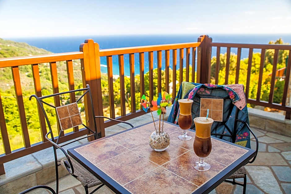 Apartment with fully equipped kitchen, coffee facilities and kitchenware, dining area, fireplace and a large veranda with view of the Aegean Sea and Pelion Mountain. Free Wi-Fi is provided throughout. The usage of the fireplace is free. Daily cleaning service is provided. Upon arrival, guests are offered a complimentary drink of Raki.