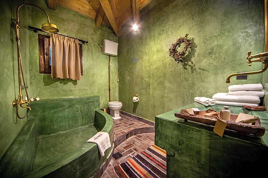 This stone-built villa features a big fireplace in the living room. There is also an elegant, custom-made bathroom, and a fully equipped kitchenette. Firewood is provided for free. Please note that this villa is split level and has an open-plan design (rooms do not offer privacy).