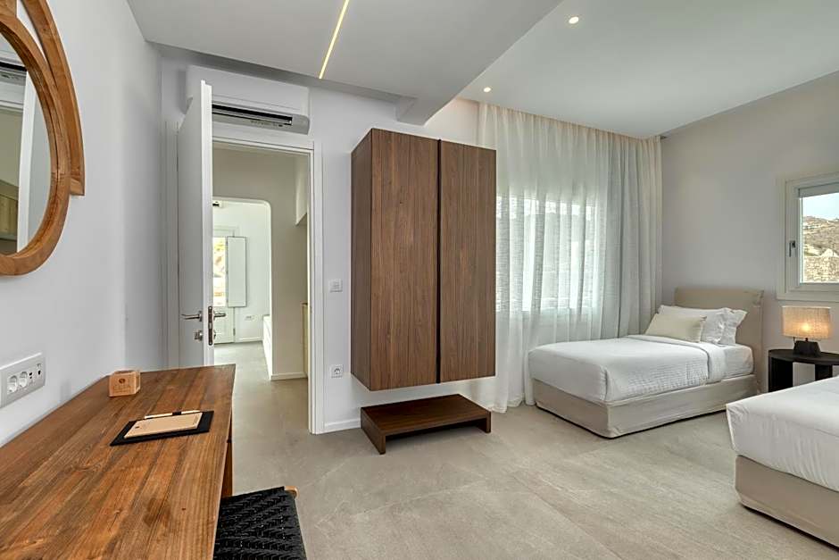 Located right on the sandy beach of Elia, this suite consists of 2 separate bedrooms with down pillows Coco Mat and a Queen size bed Coco Mat, a seating area and a well-equipped kitchenette. It enjoys views over the Aegean Sea from its terrace and features: -air conditioning -a fridge and a mini-bar -a dining area -a safe -a flat-screen TV -free Wi-Fi.