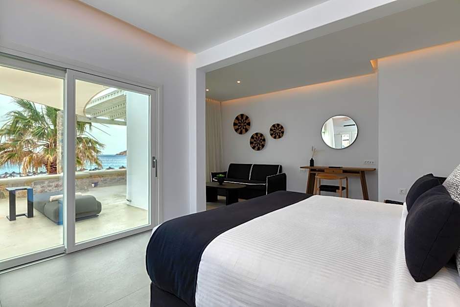 is a 5-star escape on the island of Mykonos, Greece. Located at Elia Beach, it sits about from the city center, offering direct access to sun-kissed shores and clear Aegean waters. The resort features a private beach area (free), an outdoor swimming pool (free), and free private parking, with free Wifi, air conditioning, and soundproof, non-smoking rooms for a comfortable stay.