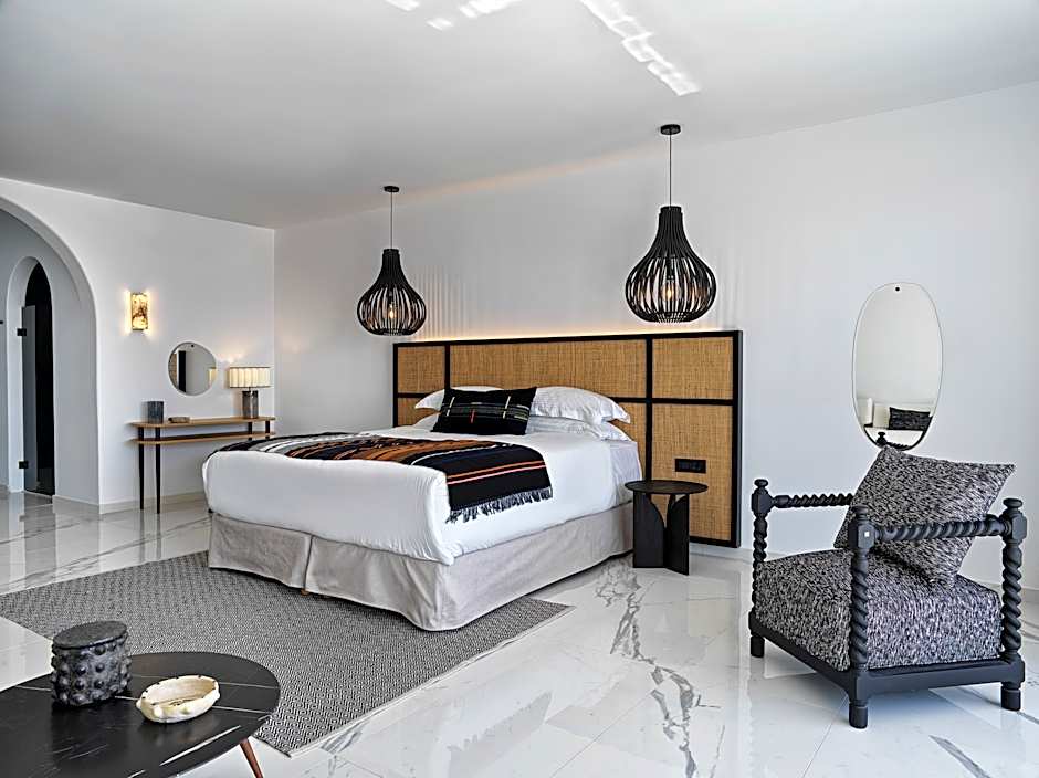 The freshly renovated Superior Suites with outdoor hot tubs are located on handpicked spots and come with outstanding interior design and a homely feel. The spacious Superior Suites are certain to offer the absolute Mykonos experience.