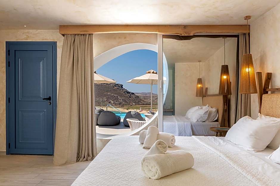 Panormos Village offers a variety of rooms including Economy, Superior, and Signature Suites with outdoor hot tubs, private heated pools, and sea views. The rooms can accommodate 2 to 4 adults and feature beds ranging from Queen size to Twin beds. Smoking is not allowed in any of the rooms provided by the hotel.