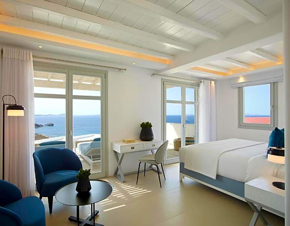 For those seeking a truly indulgent experience, the San Marco Hotel and Villas offers a range of exquisite suites with captivating views. Choose the Executive Suite with a mesmerizing sea view for a touch of luxury and relaxation during your stay. If you prefer a more unique experience, the Loft Suite, also with a sea view, provides a stylish and modern accommodation option. Whichever suite you select, you're guaranteed a comfortable and opulent retreat that perfectly complements the beauty of Mykonos.