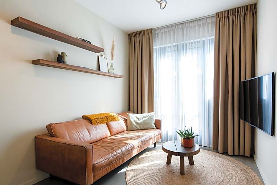 Spacious apartment features a balcony with panoramic Aegean Sea views, soundproofing and bathrobe.