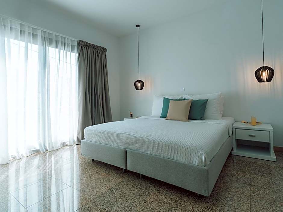 The spacious double room provides air conditioning, a wardrobe, as well as a private bathroom featuring a shower and a hairdryer. The double room's kitchenette, which has a refrigerator and kitchenware, is available for cooking and storing food. This double room features a safe deposit box, an electric kettle, a flat-screen TV and pool views. The unit offers 1 bed.