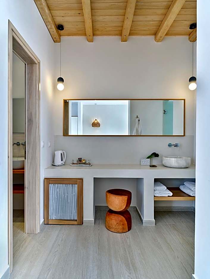 Featuring a seating area and a bathroom with hydromassage shower, this elegantly decorated suite opens to a furnished balcony overlooking the Aegean Sea and the countryside. Fitted with handmade beds and orthopedic mattresses, it offers: -air conditioning -a fridge -a flat-screen TV with satellite channels -hairdryer and free toiletries. -free WiFi access.