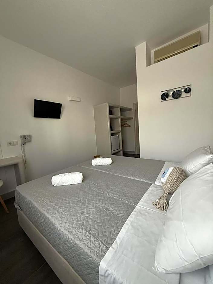 Cycladic-style room with air conditioning, TV, telephone and mini fridge. A safe is also available.
