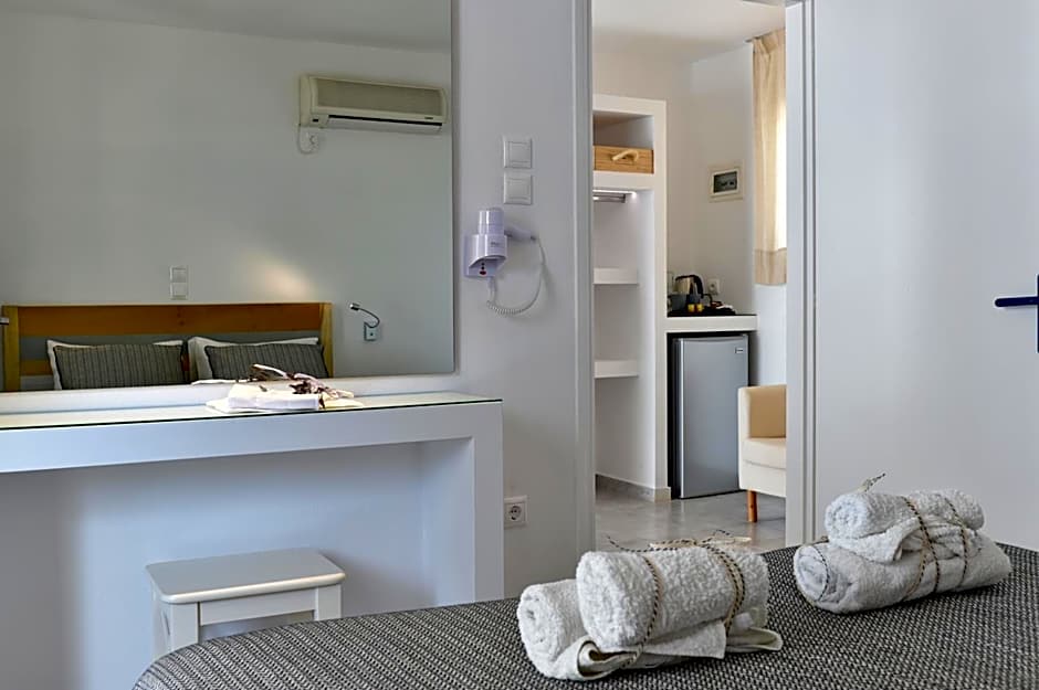 is a charming 3-star hotel on Main Street in Páros, Greece, about from the city center. Pet-friendly and jam-packed with essential comforts, it offers free WiFi, air conditioning, and non-smoking rooms, plus free on-site parking. Private entrance, a terrace with garden views, a balcony, and a kitchenette stocked with kitchenware set the stage for a relaxed island stay.