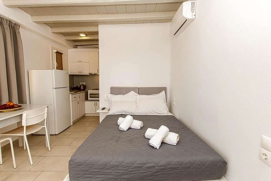 What’s on offer, you ask? Well, how about private free parking to make your adventures hassle-free, speedy complimentary wifi to share all those envy-inducing vacation photos, and air-conditioned rooms to keep you cool as you experiment with delicious local recipes in your own fully-equipped kitchen? Step outside to enjoy the sun on the terrace or kick back on the sun deck while sipping your favorite cocktail. If you’re in need of a few tips on local hotspots, the friendly tour desk staff are ready to help you uncover the best of what Mykonos has to offer!