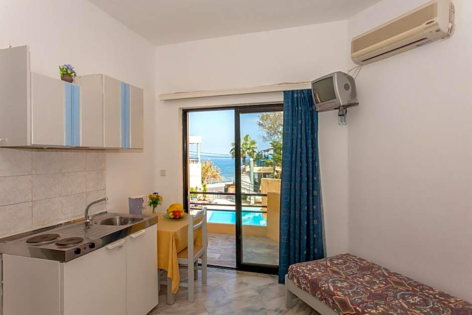 Featuring a kitchenette with fridge and kitchenware, this air-conditioned studio overlooks the Cretan Sea, the pool or the garden from its balcony. An LCD satellite TV and a safe are available.