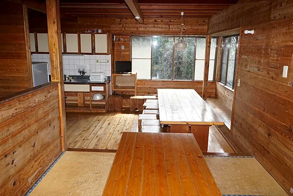 This room consists of a ground floor living room, kitchen and fireplace. The first floor has a bedroom and one children's room with bunk beds and WC. The two bedrooms are separated by a 2,20-metre plasterboard.