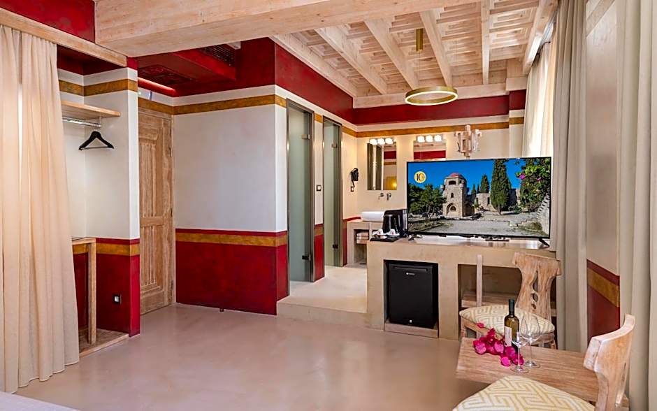 The hotel features an array of room types to cater to your specific preferences. From the spacious Superior Suite Ialyssos to the indulgent Executive Suite Rhodes with Hot Tub, each room is thoughtfully designed to provide comfort and luxury. With options like the Deluxe Stone Room and the Junior Suite Kamiros, you can choose the perfect accommodation to suit your needs, ensuring a delightful and memorable stay at this exquisite hotel in Ródos.