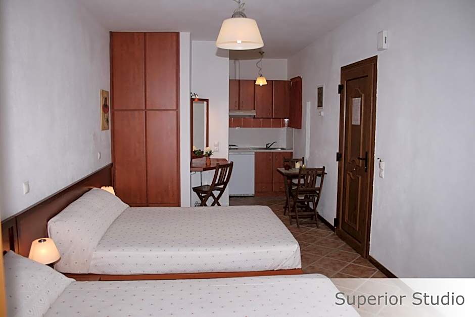 Accommodation centers on sea-view living with a diverse slate of options. Choices include Maisonette, Sea View; Apartment, 2 Bedroom; and the expansive Maisonette Apartment, 2 Bedroom, Sea View. For guests seeking more intimate stays, Luxury Studio, Sea View and Superior Studio, Sea View provide cozy comfort, while Standard Studio models such as Standard Studio, Sea View and Standard Studio, King/Twin, Sea View offer flexible bed configurations. Larger group possibilities appear with options like Superior Studio, 2 Double, Sea View, Single Use and Maisonette, 2 Twin, Sea View, ensuring space for families or friends.