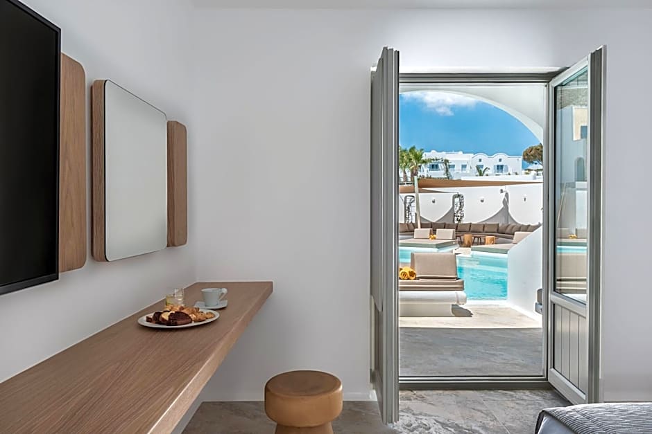 Nestled just half a kilometer from the lively heart of Kamari on the stunning island of Greece, the offers a luxurious 5-star escape perfect for travelers craving both relaxation and adventure. Set right on the picturesque Kamari Beach, this inviting oasis boasts a range of top-tier amenities, including a sparkling outdoor pool, soothing spa services, and a variety of wellness packages to rejuvenate your mind and body. Whether you're lounging on the sun deck with beach umbrellas or taking in the spectacular sea views from your balcony, every moment here is designed to delight.