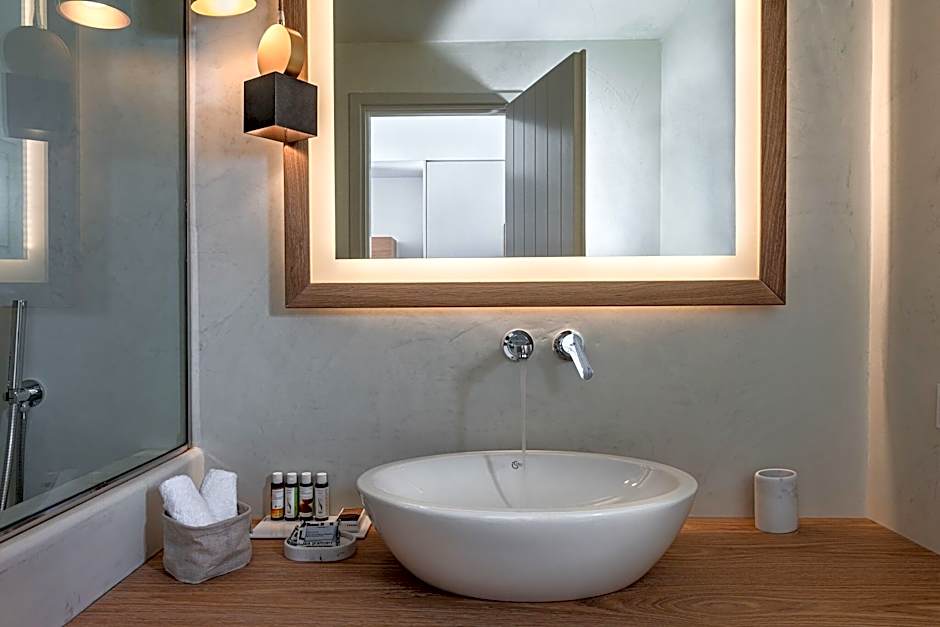 The traditionally designed Superior Double Rooms welcome you into their elegantly decorated, luminous interiors. These rooms are more spacious than the Classic type of rooms, consisting of a queen-size bed—perfect for two people—and an ample mosaic bathroom set with a shower, along with luxury amenities. All Superior Double Rooms are fitted with a tastefully furnished balcony or terrace, that offers beautiful views to the verdant gardens or the shimmering turquoise waters of the swimming pool.