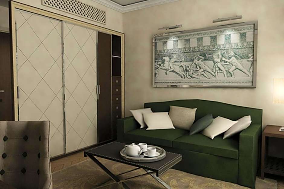 Classically decorated room with dark wood furnishings. Unit is soundproof and comes with air conditioning, LCD TV, mini fridge and free Internet access.