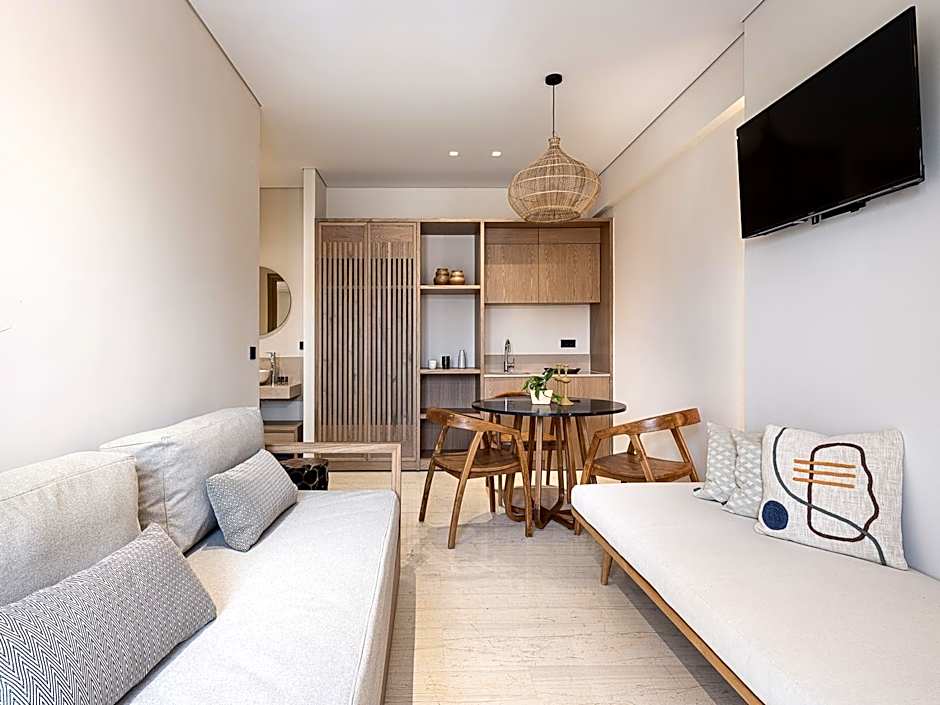 This apartment has a balcony with garden views, seating area and kitchenette.